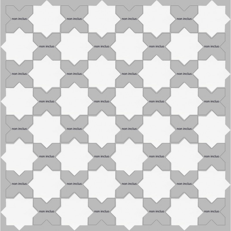 Chaque carton contient 27 carreaux. En associant 1 boîte de motif étoile et 1 boîte de motif croix, on obtient une surface de 1 m². Bien veiller à commander autant de cartons de carreaux en forme d'étoile que de cartons de carreaux en forme de croix de la collection Becolors.